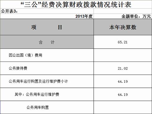 1、支出口径。按照党中央、国务院有关文件及部门预算管理有关规定,“三公”经费是指本部门[包括部门本级及所属行政单位(含参照公务员法管理的事业单位)、事业单位及其他单位]通过公共预算财政拨款资金安排的因公出国(境)费、公务用车购置及运行费和公务接待费。其中,因公出国(境)费指单位工作人员公务出国(境)的住宿费、旅费、伙食补助费、杂费、培训费等支出;公务用车购置及运行费支出指单位公务用车购置费及租用费、燃料费、维修费、过桥过路费、保险费、安全奖励费用等支出。公务接待费指单位按规定开支的各类公务接待(含外宾接待)支出。