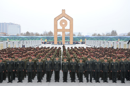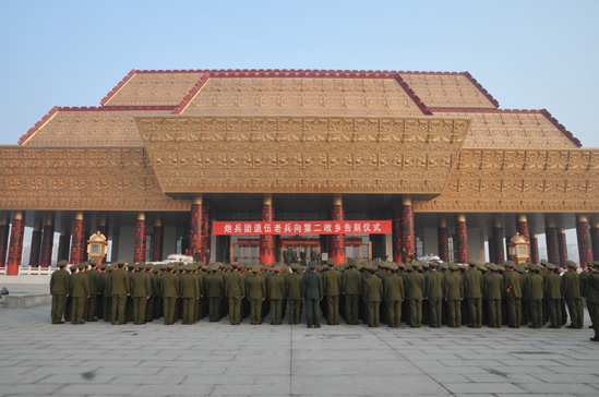 11月29日,驻安炮兵团退伍老兵向第二故乡告别仪式在中国文字博物馆广场举行
