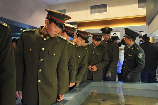 驻安部队是一支有着光荣传统的部队,在抗震救灾中为挽救人民财产立下了赫赫战功,在中国文字博物馆震撼开馆之际,为保障顺利开馆付出了辛勤的劳动。该部队组织老兵在退伍之前到我馆参观。