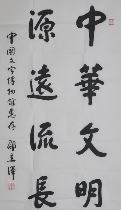 近日,原人民日报社社长、中将、著名书法家邵华泽先生特为中国文字博物馆开馆一周年题赠神品书作“中华文明,源远流长”。