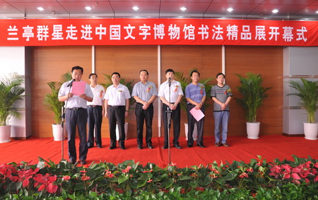 9月1日上午, 《兰亭群星走进中国文字博物馆书法精品展》开幕式在中国文字博物馆学术报告厅隆重举行。河南省文联副主席、省书法家协会主席宋华平,中共安阳市委常委、常务副市长马林青,市长助理陈中武,中国文字博物馆党委书记、常务副馆长冯克坚,省书法家协会副主席米闹,安阳市委宣传部副部长、中国文字博物馆党委副书记、副馆长李俊国,中国文字博物馆党委委员、纪委书记李宽出席仪式。
