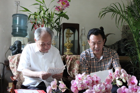 7月21日,中国文字博物馆党委书记、常务副馆长冯克坚,党委副书记、副馆长李俊国拜访了馆长冯其庸老先生。