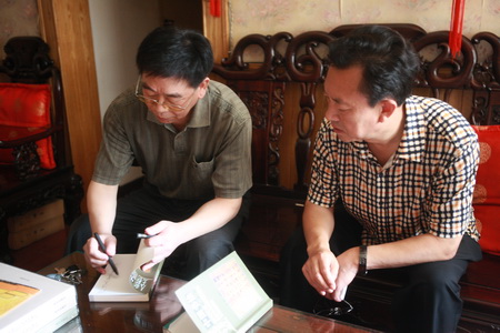 最后,冯克坚邀请刘守安先生为中国文字博物馆开馆一周年庆典题词、赠书,刘守安先生愉快地接受了邀请并当场赠书签名留念。