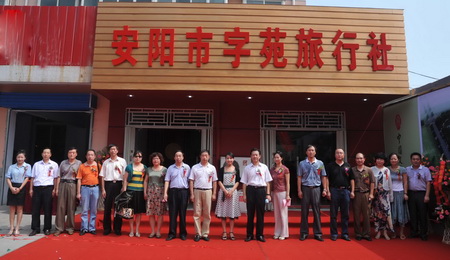参加仪式的领导和来宾为安阳市字苑旅行社有限责任公司揭牌并合影留念