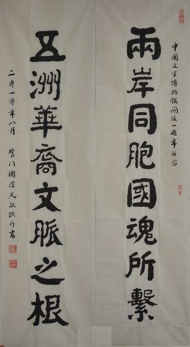 谢澄光先生为中国文字博物馆题写“两岸同胞国魂所系,五洲华裔文脉之根”