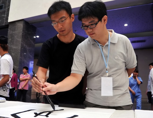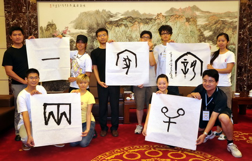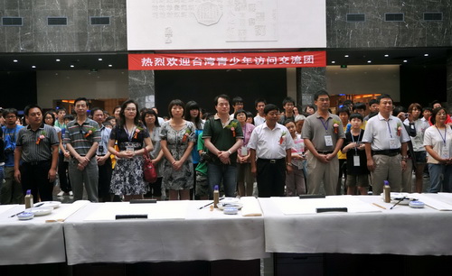 活动中,台湾青少年交流团在我馆观看了安阳民间艺术展示,同安阳的青少年共同执笔书写甲骨文“两岸一家亲”,接受了安阳甲骨文学校的老师和同学们赠送的甲骨文书法作品,并系统地参观了中国文字博物馆文字发展史展览。他们对汉字及汉字艺术表现出极大的兴趣,表示通过这次安阳之行,将安阳悠久的历史、灿烂的文化和安阳人民的深情厚谊介绍给更多的台湾青少年朋友,进一步加深两岸的沟通和交流。
