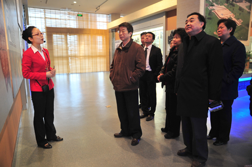 2010年3月25日上午,国务院参事室副主任、调研组组长方宁,国务院参事葛志荣、任玉岭、黄当时,国务院参事室参事业务司副巡视员张立平,教育部人事司副巡视员谢志敏,教育部人事司综合处副处长孟庆瑜,国务院参事室参事业务司副处长郭良玉等一行在河南省政府参事邓庆洲、河南省政府参事室业务处处长张荣欣,安阳市政府副市长吴海的陪同下莅临我馆调研。