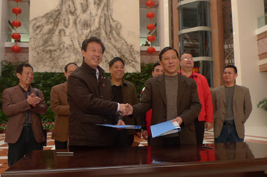 中国文字博物馆党委书记、常务副馆长冯克坚代表中国文字博物馆与闽台缘博物馆缔结友好合作协议。