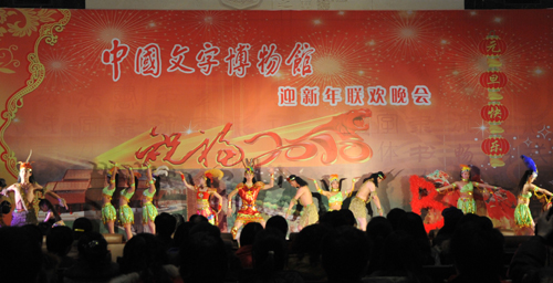 中国文字博物馆新年联欢晚会以一曲青春、热情的开场舞《庆祝》拉开了序幕。联欢晚会以庆祝2009年中国文字博物馆震撼开馆并获得巨大成功、祝福2010为主题,展现中国文字博物馆的青春、热情和生命力,在欢快融洽的氛围里欢聚一堂,共同回顾过去,展望未来。