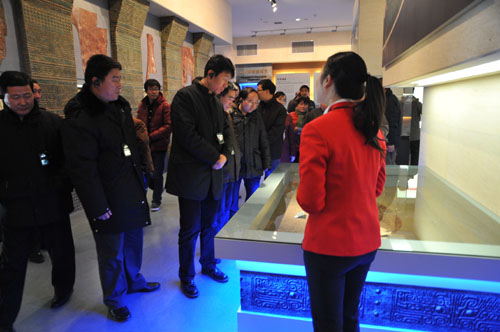 2009年12月25日,河南日报报业集团党委委员、副社长董林一行在安阳市委宣传部副部长、外宣办主任于良,河南日报驻安阳记者站站长任国战的陪同下莅临我馆,参观中国文字博物馆。(摄像 魏辉)