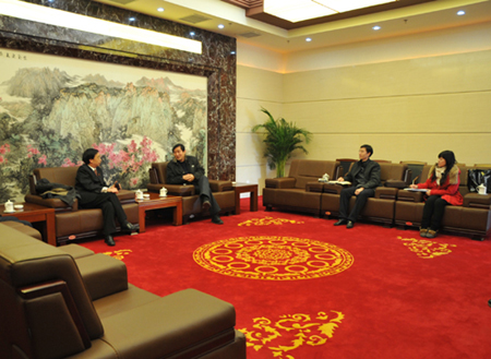 2010年1月13日 ,河南工业大学中国粮食博物馆筹建办公室主任师高民一行莅临我馆参观考察。中国文字博物馆党委委员、纪委书记李宽生陪同。