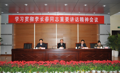 11月19日晚,我馆在学术报告厅召开“学习贯彻李长春同志重要讲话精神”会议。市委常委、副市长、中国文字博物馆建设领导小组常务副组长李宏伟,中国文字博物馆党委书记、常务副馆长冯克坚,中国文字博物馆党委副书记王金涛,党委委员杜芬出席了会议。