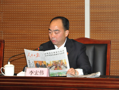 会上,李宏伟传达了中共中央政治局常委李长春同志视察中国文字博物馆时的重要指示精神。
