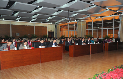 11月19日晚,我馆在学术报告厅召开“学习贯彻李长春同志重要讲话精神”会议。安阳市委常委、副市长、中国文字博物馆建设领导小组常务副组长李宏伟,中国文字博物馆党委书记、常务副馆长冯克坚,中国文字博物馆副书记、市文化局局长王金涛,中国文字博物馆党委委员、市文化局副局长杜芬出席了会议,中国文字博物馆全体工作人员参加了会议。会议由冯克坚主持。