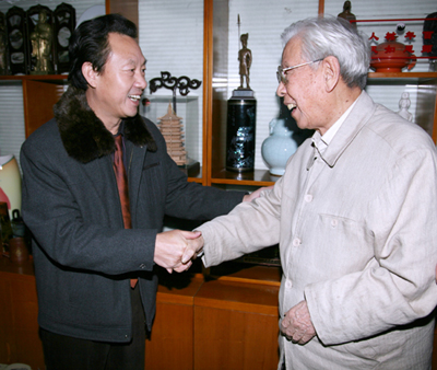 冯克坚同志与著名篆刻艺术家水既生老先生合影留念