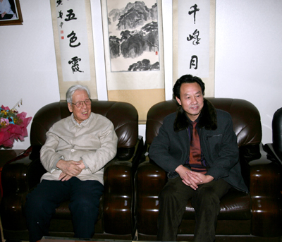 冯克坚同志于山西大学拜访著名国学家、书法家姚奠中老先生