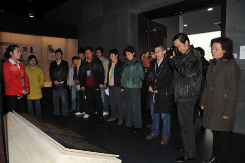 2009年12月12日,参加全国博物馆“三贴近”工作座谈会的全国各省、自治区、直辖市文物行政部门和故宫博物院等23家重点博物馆的负责人在中国文字博物馆党委书记、常务副馆长冯克坚的陪同下莅临我馆参观指导。