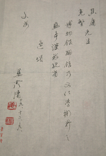书画艺术理论家姜澄清先生致信祝贺我馆开馆