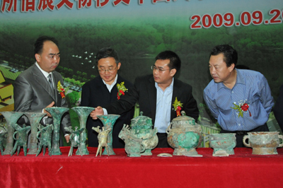 齐肇业、李宏伟、李玉东、冯克坚等共同为借展文物揭幕。