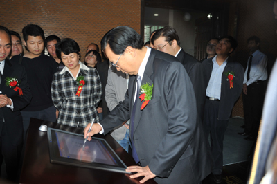 省委书记、省人大常委会主任徐光春亲自将江泽民同志题写的中国文字博物馆馆名转送给安阳市委书记张广智。