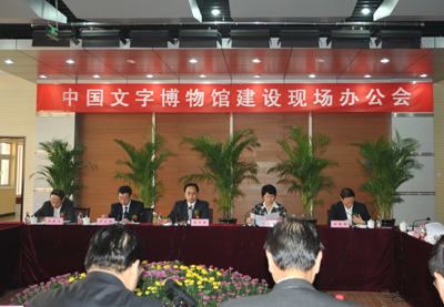 徐光春书记在中国文字博物馆四楼多功能厅召开了中国文字博物馆建设现场办公会