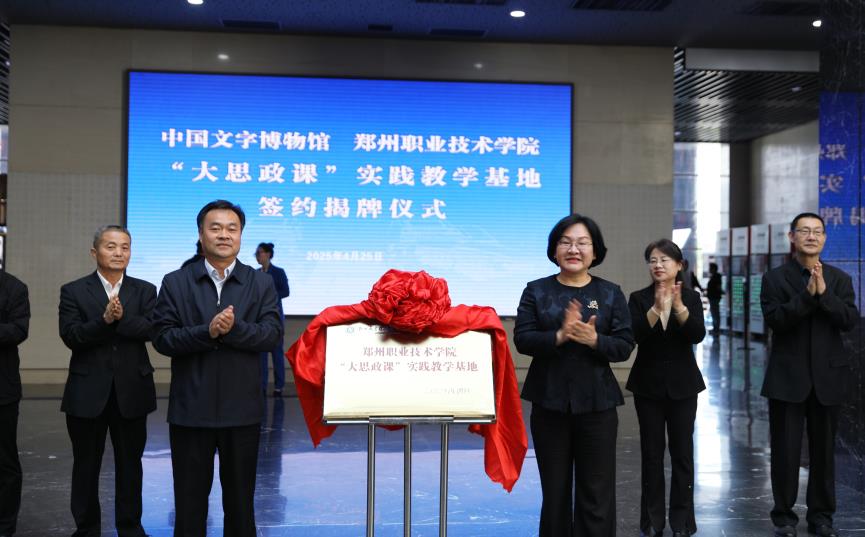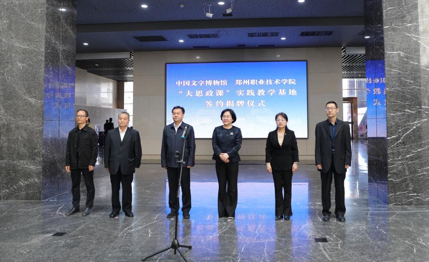 中国文字博物馆党委书记、常务副馆长宁红亮与郑州职业技术学院党委书记吕村共同为“郑州职业技术学院‘大思政课’实践教学基地”揭牌。