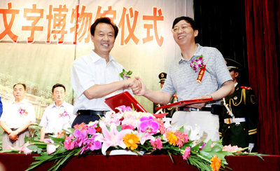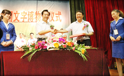 中国文字博物馆建设领导小组专职副组长兼办公室主任冯克坚和省文物考古研究所所长孙新民签署文物入藏协议。