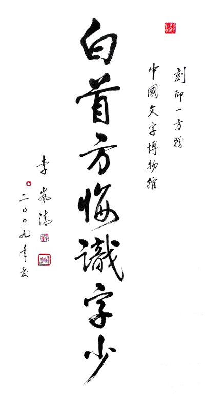 李岚清同志赠送中国文字博物馆的“白首方悔识字少”书法条幅