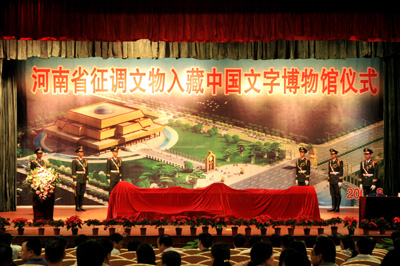 河南省征调文物入藏中国文字博物馆仪式在河南博物院多功能厅隆重举行