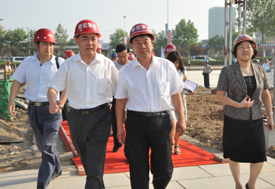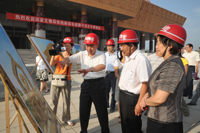 8月11日,国家文物局副局长张柏莅临中国文字博物馆建设工地,视察建设情况。